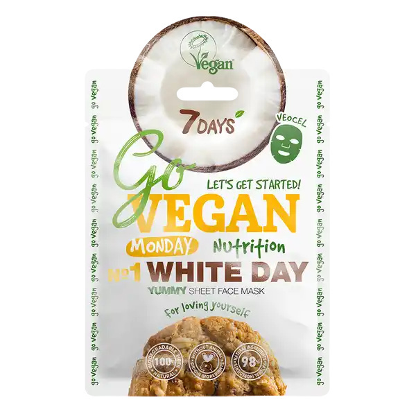 7DAYS GoVEGAN Odżywcza maska w płachcie Monday WHITE DAY z olejem owsianym i ekstraktem z kokosa, 25 g
