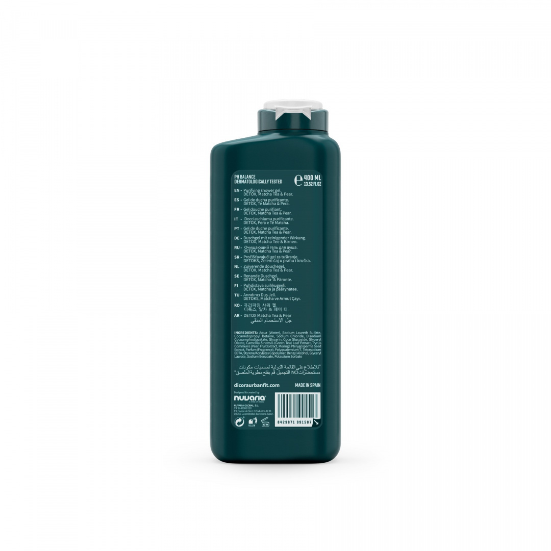 Oczyszczający żel pod prysznic DETOKS Herbata Matcha i Gruszka z naturalnymi ekstraktami z gruszki i herbaty Matcha. Odkryj skórę, która jest miękka, nawilżona i oczyszczona.