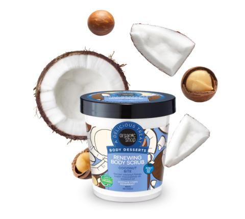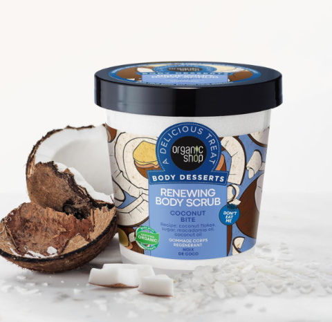 Odkryj magię pielęgnacji ciała z naszego Body Desserts Regenerujący peeling do ciała Coconut Bite od marki Organic Shop. To nie tylko peeling, to prawdziwa uczta dla Twojej skóry, egzotyczne wakacje na białych plażach tropikalnych wysp. Body Desserts Regenerujący peeling do ciała Coconut Bite to wyjątkowy peeling, który w harmonijny sposób łączy moc naturalnych składników, takich jak płatki kokosowe, cukier, olej makadamia i olej kokosowy. Każdy z tych elementów działa pozytywnie na skórę: skutecznie złuszcza martwy naskórek, nawilża, odżywia i regeneruje. Po użyciu tego peelingu Twoja skóra staje się jedwabiście gładka, jędrna i promienna, jak pąk kwiatu, gotowego do rozkwitu, a jej zdrowy wygląd wywołuje zachwyt.  Pozwól sobie na dodatkowy luksus i odkryj, jak piękna może być Twoja skóra dzięki Body Desserts.