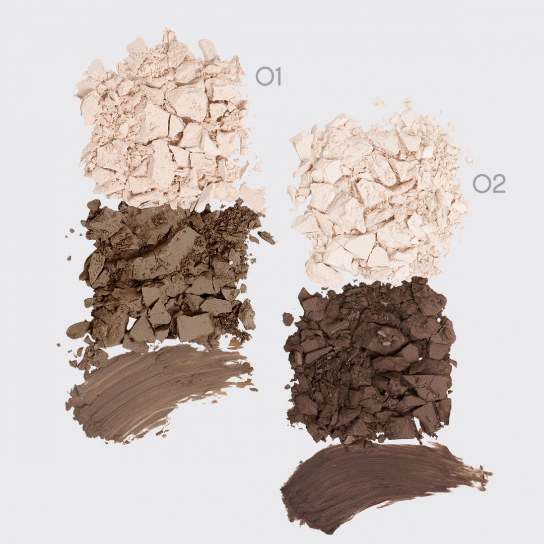 W każdym zestawie trzy uniwersalne odcienie: cienie do dodania koloru i stworzenia pożądanego kształtu, kolorowy wosk do utrwalenia efektu oraz rozświetlacz podkreślający łuk pod brwią.