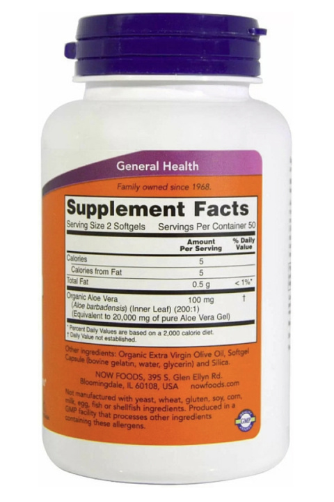 Żel aloesowy w żelowych kapsułkach Now Foods Aloe Vera (100 softgels)